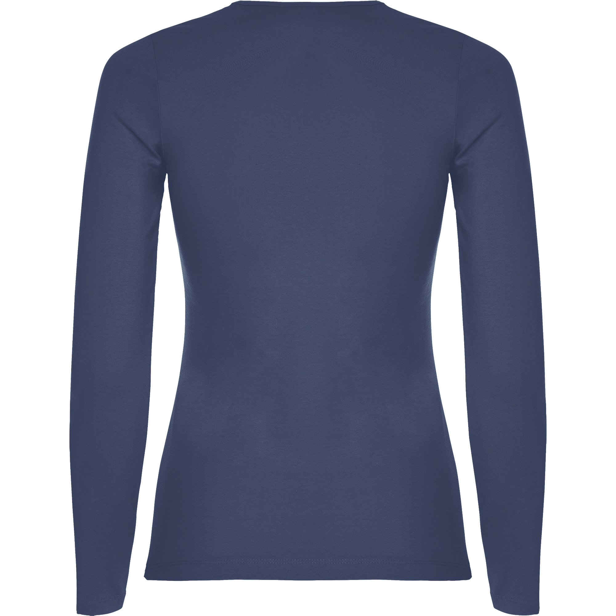 Camiseta de manga larga entallada en cintura. Cuello redondo con ribete del mismo tejido.