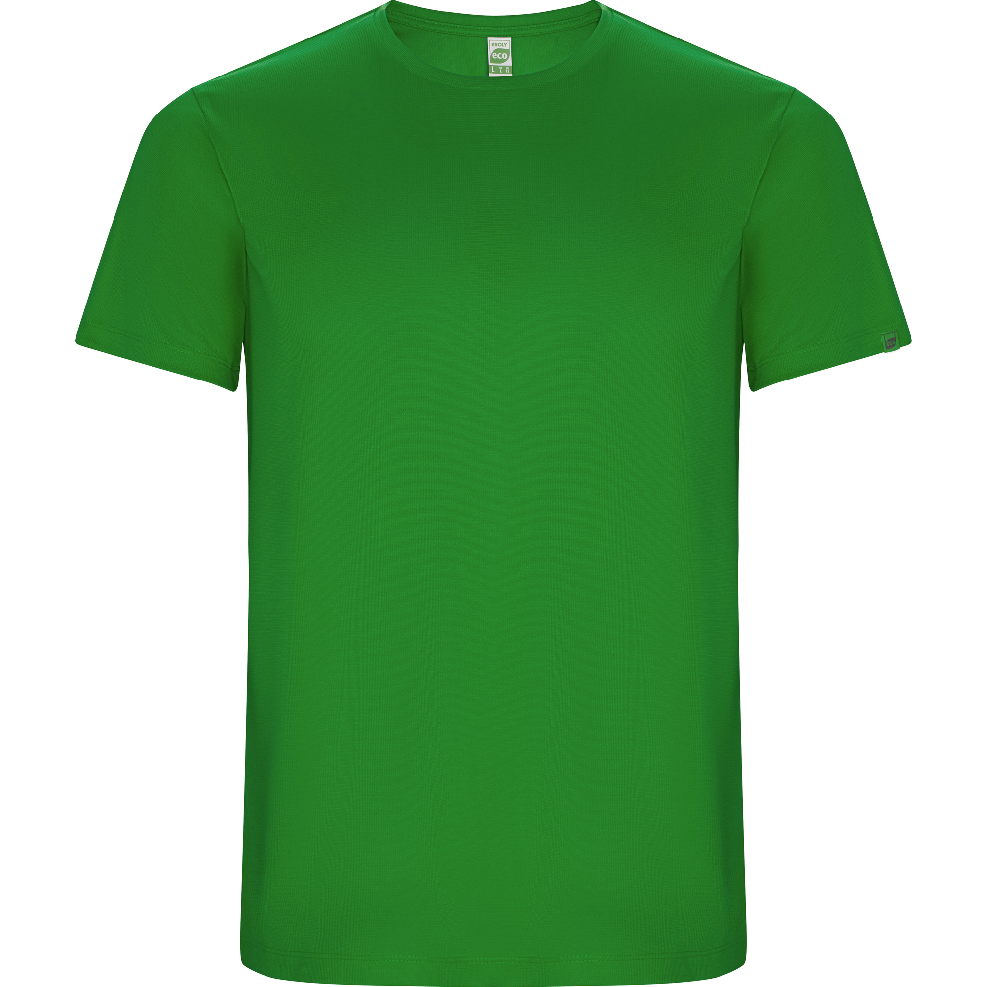 Camiseta técnica manga corta transpirable. Poliéster reciclado. Roly Control Dry. Cuello redondo y cubrecosturas del mismo tejido al tono. Etiqueta tejida eco. Certificado GRS.